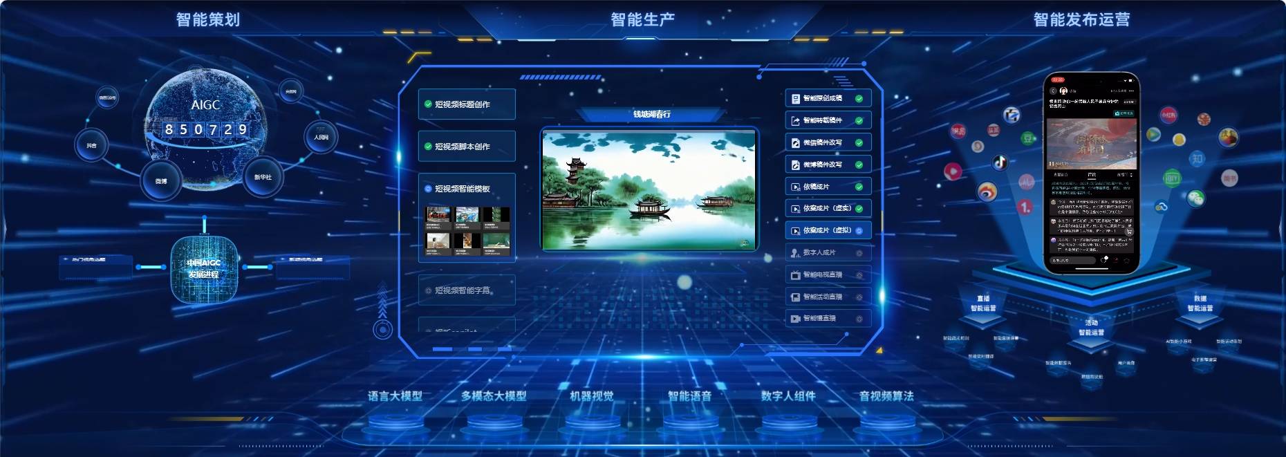 其中包括内容创作洞察大脑,支持AI多视角创意策划与个性化文稿创作风格训练,极大提升写稿效率;AIGC大视听工具魔方,拥有80+生成式工具,涵盖文生图、依稿成片、图生视频、图像睿取等工具,能够根据用户角色和业务进行推荐,并支持插件式接入,快速升级原有编辑平台;智能传播运营矩阵,打造全智能终端,推进生产运营一体化建设。